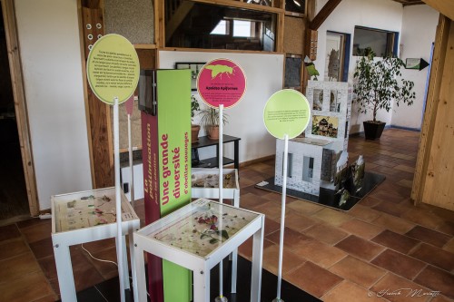 Cette exposition propose une immersion au coeur de la haie avec différents modules permettant d'explorer les différentes strates composant une haie.